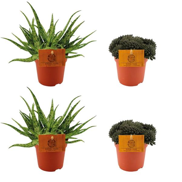 2x Aloe Paradisicum + 2x Senecio Stapeliaeformis – 4 pièces – Ø10.5cm – ↕10cm