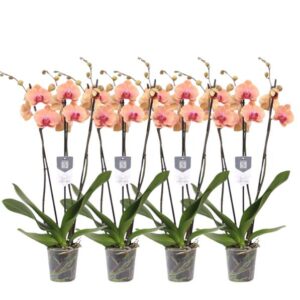 Ensemble de 4 – Phalaenopsis Joyride – 3 branches orchidée – 60 cm – Ø12cm